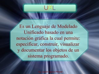 El documento describe Unified Modeling Language (UML) y sus características. UML es un lenguaje de modelado gráfico que permite especificar, construir, visualizar y documentar los componentes de un sistema de software. Es el resultado de la unificación de los métodos de modelado orientados a objetos de Booch, Rumbaugh y Jacobson. Permite generar diseños que capturen las ideas del analista de una manera fácil de entender y comunicar. También sirve como puente entre los requerimientos y la implementación.