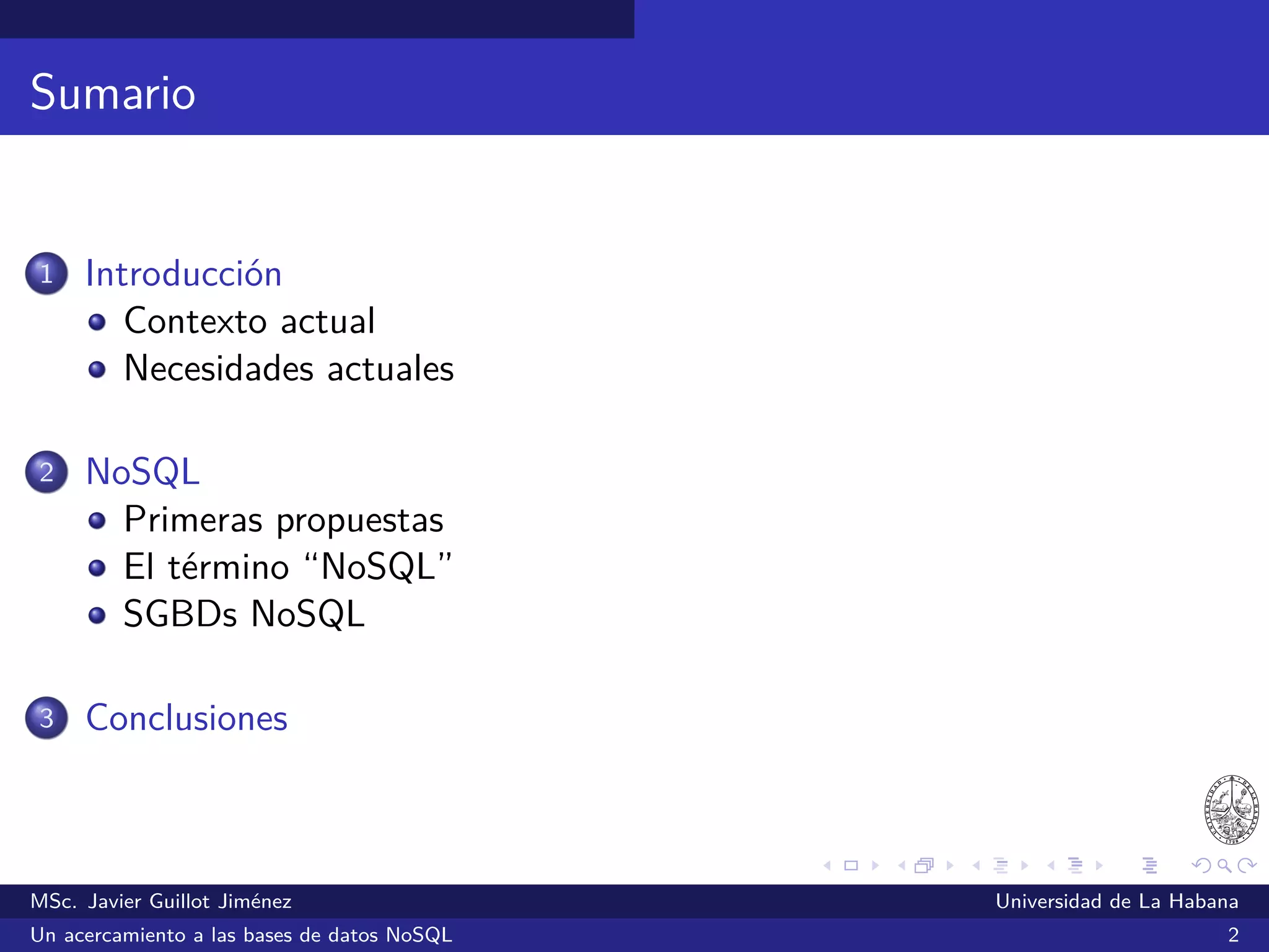 El documento aborda las bases de datos NoSQL, destacando su evolución y la necesidad de superación que presentan frente a los sistemas de gestión de bases de datos relacionales. Se analizan las limitaciones de estos últimos y se describen las características que deben poseer los SGBDs modernos, tales como escalabilidad y flexibilidad. Además, se menciona la motivación inicial de empresas como Google y Amazon para experimentar con tecnologías NoSQL en respuesta a sus crecientes volúmenes de datos.