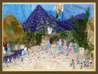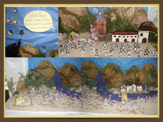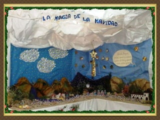 El documento describe cómo un colegio se reunió alrededor de un Belén de Navidad, incluyendo niños, profesores, padres y otros trabajadores del centro, sin importar su raza, ideas o creencias. Todos se acercaron cantando para sentir el calor de la familia de Jesús, María y José. Desearon que en el mundo hubiera paz, alegría y amor. Hubo magia esa Navidad y todos descubrieron el verdadero sentido de la celebración.