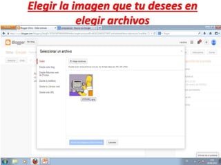 Seleccionar una imagen de archivos, insertarla en un blog, y publicar el archivo para verlo.