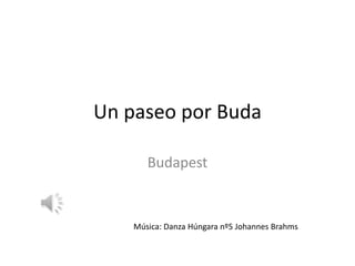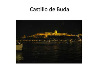 Este documento presenta una guía turística de varios lugares históricos y culturales en Buda, Hungría. Describe numerosos sitios dentro del Castillo de Buda como la Iglesia Matías, la Galería Nacional Húngara y el Museo de Historia de Budapest. También menciona otros lugares notables como el Palacio Sándor, la Confitería Ruszwurm, la Columna de la Santísima Trinidad y varias casas y edificios del siglo XIV. El documento ofrece una visión general de la rica historia y ar