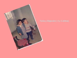 El documento presenta breves descripciones de varios niños, incluyendo sus nombres, edades y la situación familiar. Menciona a Tania y Alejandro de 4 y 3 años, a Alejandro de 2 años y 8 meses y a la recién nacida María Jesús.