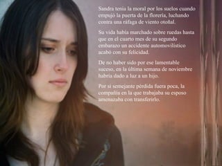 Sandra entra a una florería sintiéndose resentida por las dificultades que ha enfrentado recientemente, incluyendo la pérdida de su hijo en un accidente automovilístico. La florista le ofrece un arreglo floral inusual de tallos de rosa sin flores, explicándole que representa apreciar tanto los buenos como los malos momentos de la vida. Esto ayuda a Sandra a encontrar consuelo y gratitud a pesar de sus pruebas, comprendiendo que tanto las "rosas" como las "espinas" de