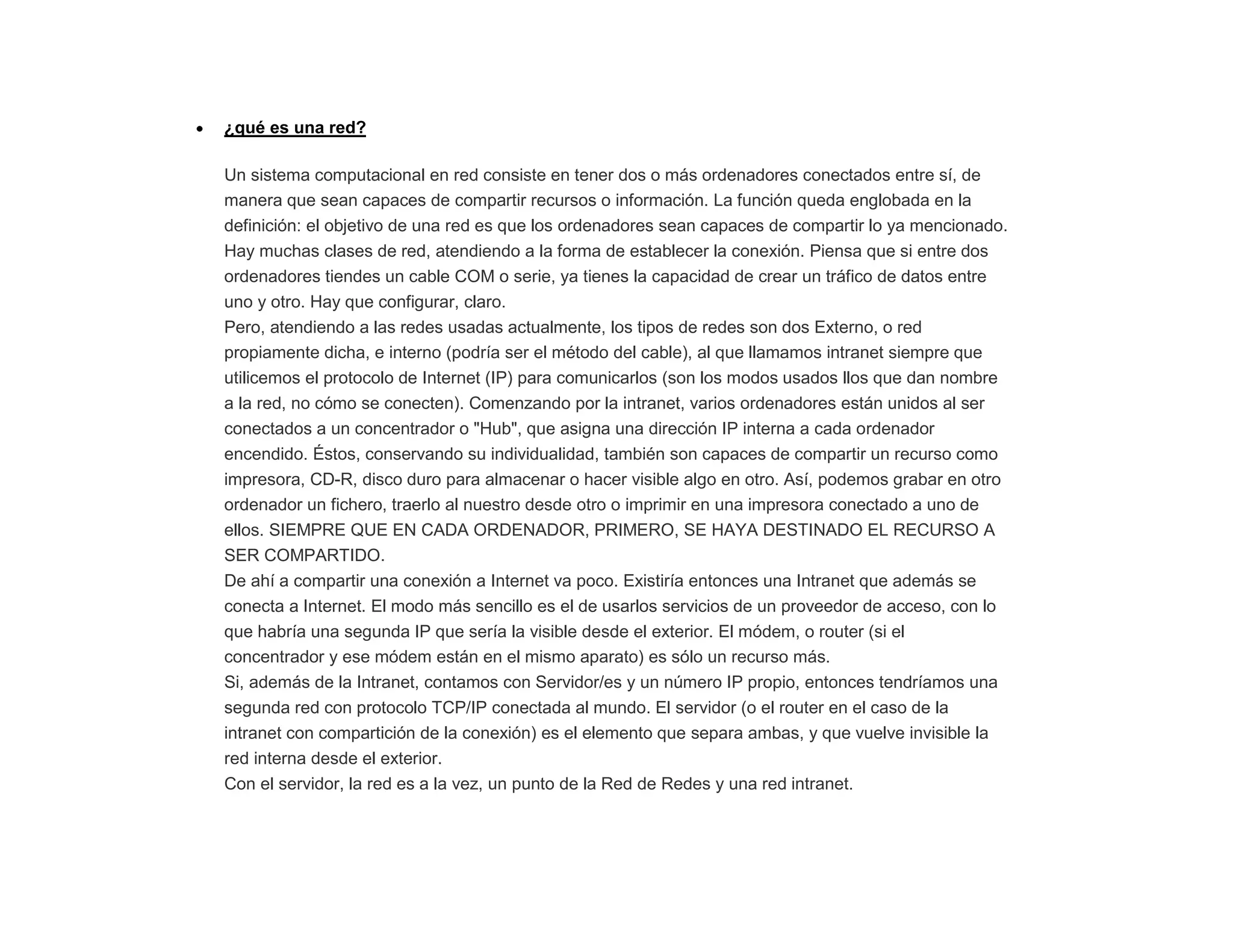 Una red consiste en dos o más ordenadores conectados entre sí para compartir recursos e información. Existen redes internas (intranets) conectadas a través de un concentrador y redes externas (Internet) conectadas a través de un servidor. Los elementos clave de una red son las estaciones de trabajo, los servidores, las tarjetas de interfaz de red y el cableado.