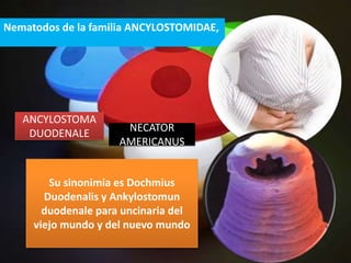 1) Los nematodos Ancylostoma duodenale y Necator americanus causan anquilostomiasis o uncinariasis en humanos.
