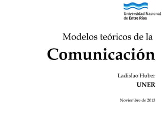 Este documento presenta una introducción a los modelos teóricos de la comunicación. Resume los principales modelos históricos como el modelo lineal de Aristóteles, el modelo de intencionalidad de Lasswell, el modelo matemático de Shannon y Weaver, el modelo transaccional de Osgood y Schramm, y el modelo interactivo del grupo de Palo Alto. También describe brevemente otros modelos como los de Berlo, DeFleur y Dance, así como enfoques posteriores basados en la neurociencia y la física cuántica.