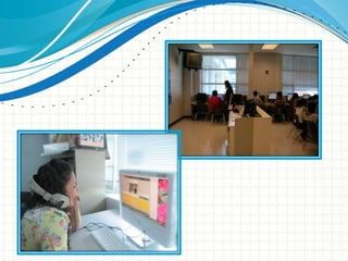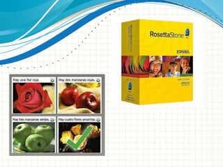 El documento describe un programa de aprendizaje de inglés implementado en la escuela secundaria Harrisonburg High School en Virginia. El programa utiliza el software Rosetta Stone para enseñar inglés a estudiantes extranjeros. Se evalúa el progreso de los estudiantes a través de indicadores como sus habilidades comunicativas, resultados de evaluaciones y su autoestima al hablar en inglés. El resumen incluye tablas que muestran el progreso de cada estudiante en el programa durante nueve semanas.