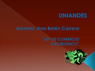 Este documento presenta un proyecto de ley sobre comercio electrónico en Ecuador. Establece que el uso de sistemas de información y redes electrónicas ha adquirido importancia para el desarrollo del comercio y la producción. Regula los mensajes de datos, la firma electrónica, los servicios de certificación, la contratación electrónica y la prestación de servicios electrónicos a través de redes de información, incluido el comercio electrónico. También establece principios como el reconocimiento jurídico de los mens