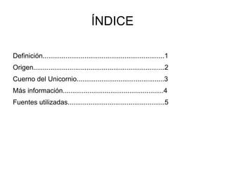El unicornio es un animal mitológico con características de caballo blanco y un cuerno, con un origen que se remonta a la mitología griega. Se le atribuyen propiedades mágicas y un cuerno que simboliza abundancia y purificación. Su representación ha variado a lo largo del tiempo, siendo considerado un ser fabuloso en la Edad Media.