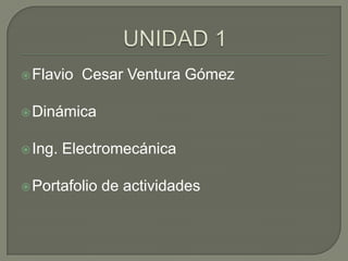 Flavio Cesar Ventura Gómez es un ingeniero electromecánico con experiencia en dinámica. Su portafolio incluye actividades relacionadas a su campo de estudio y trabajo.