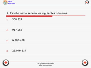 2. Escribe cómose leen los siguientes números. 308.527 917.058 6.203.480 23.040.214