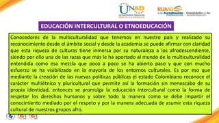 Este documento resume la historia de los orígenes de los afrodescendientes colombianos, comenzando con su llegada a América como esclavos traídos por los colonizadores españoles. A pesar de sufrir desarraigo y esclavitud, con el tiempo algunos escaparon y formaron comunidades llamadas palenques, donde pudieron preservar aspectos de su cultura africana. Más adelante, se expidieron leyes para abolir la esclavitud y reconocer los derechos de los afrocolombianos como grupo é