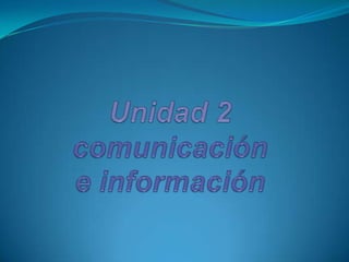 La comunicación implica la transmisión de información entre dos entidades a través de signos compartidos. Los documentos discuten la naturaleza de la comunicación, los elementos de un sistema de comunicación como la fuente, codificación, mensaje, canal y receptor, y la importancia de los sistemas de información para las organizaciones. También cubre temas como los medios de comunicación masiva e Internet y sus ventajas sobre otros medios como su interactividad y capacidad de actualizarse constantemente.