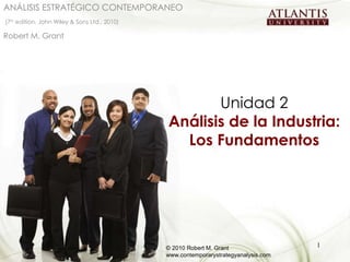Este documento presenta los conceptos fundamentales del análisis de la industria. Explica que el análisis de la industria permite entender cómo la estructura de la industria impulsa la competencia y determina la rentabilidad. Utiliza el marco de las cinco fuerzas de Porter para analizar los determinantes de la competencia en una industria, como el poder de los proveedores, amenazas de sustitutos, amenazas de nuevos competidores y poder de negociación de los clientes. También describe cómo identificar los factores clave del éx