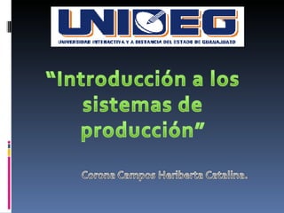 El documento describe los conceptos básicos de un sistema y un sistema de producción. Define un sistema como un conjunto organizado de elementos intelectuales y naturales con una función específica. Un sistema de producción convierte los insumos en un producto tangible o intangible a través de una serie de procesos y operaciones interrelacionadas.
