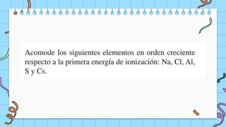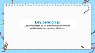 El documento describe la tabla periódica de los elementos, la cual fue desarrollada por Mendeleev y Meyer en 1869 para agrupar los 66 elementos conocidos de acuerdo a sus propiedades. La tabla periódica ayudó a predecir las propiedades de elementos aún no descubiertos y es actualizada por la IUPAC. Cada elemento tiene un lugar único determinado por su número atómico y configuración electrónica.