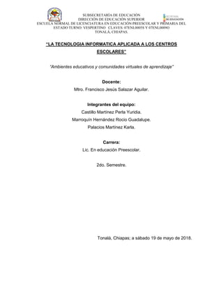 Este documento describe los modelos de equipamiento y herramientas digitales para la educación en el aula, así como la adaptación de estas herramientas a los ambientes educativos. Explica que un aula telemática está equipada con hardware como computadoras y proyectores, software educativo, y conectividad. También describe varias herramientas digitales como wikis, blogs, videos y redes sociales y cómo estas pueden usarse en el aula. Finalmente, discute la importancia de adaptar el uso de estas herramientas a los ambientes educativos y crear