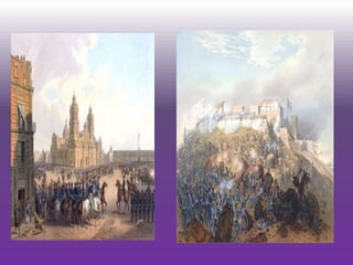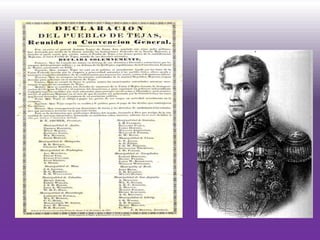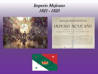 Este documento presenta una breve historia de México desde su independencia en 1821 hasta 1855. Resume los principales eventos políticos y conflictos del periodo, incluyendo el Plan de Iguala, la consumación de la independencia, el Imperio Mexicano bajo Iturbide, el establecimiento de la República y la Constitución de 1824, los conflictos entre federalistas y centralistas, la dictadura de Santa Anna, las guerras con Estados Unidos y Francia, y los tratados que cedieron territorio mexicano. También menciona la composición