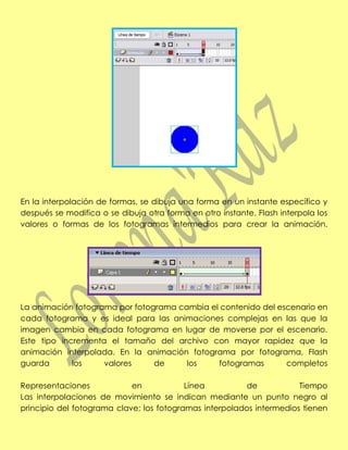 Este documento describe diferentes técnicas de animación en Flash, incluyendo: