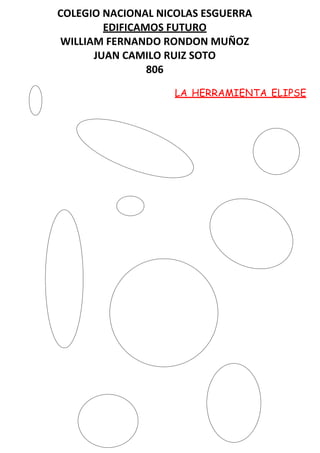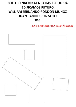 Este documento presenta información sobre dos herramientas geométricas: el rectángulo y la elipse. El documento incluye el nombre de la institución educativa "Colegio Nacional Nicolas Esguerra" y los nombres de dos estudiantes, William Fernando Rondon Muñoz y Juan Camilo Ruiz Soto.