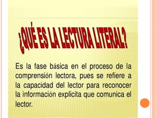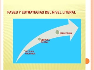Este documento proporciona una introducción a la comprensión lectora. Explica que leer significa interactuar con un texto para comprenderlo e interpretarlo. Describe las diferentes formas de leer, como la prelectura, lectura global y lectura profunda. También cubre los diferentes niveles de comprensión lectora como literal, inferencial, analógico y crítico/valorativo. Finalmente, presenta algunas estrategias para desarrollar la comprensión lectora.