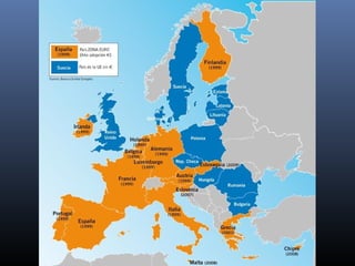Europa es un continente compuesto por 49 estados independientes, mientras que la Unión Europea es una alianza política y económica entre 28 de esos estados europeos creada después de la Segunda Guerra Mundial para promover la paz, la cooperación económica y la competencia frente a las superpotencias. La UE ha crecido gradualmente en tamaño e integración política y económica a través de tratados como el de Maastricht que estableció las bases para una moneda única.