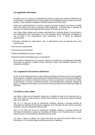 El documento resume los conceptos clave de comercio electrónico. Explica que el comercio electrónico implica la compra y venta de productos o servicios a través de medios electrónicos como Internet. También cubre temas como la legislación relacionada con el comercio electrónico, amenazas como virus y hackers, y aspectos éticos como seguridad, privacidad e identidad en transacciones en línea.