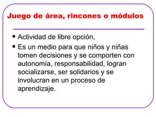 El documento describe la creación y planificación de un rincón lógico matemático en el aula. Se sugiere organizar el aula en pequeños grupos trabajando en rincones diferentes tres veces por semana durante 30-45 minutos para permitir una atención más individualizada a los niños y niñas. Los rincones lógico matemáticos implican actividades como contar, sumar y restar con cantidades pequeñas, y trabajar conceptos como seriación, clasificación y conocimiento de números usando material concreto.