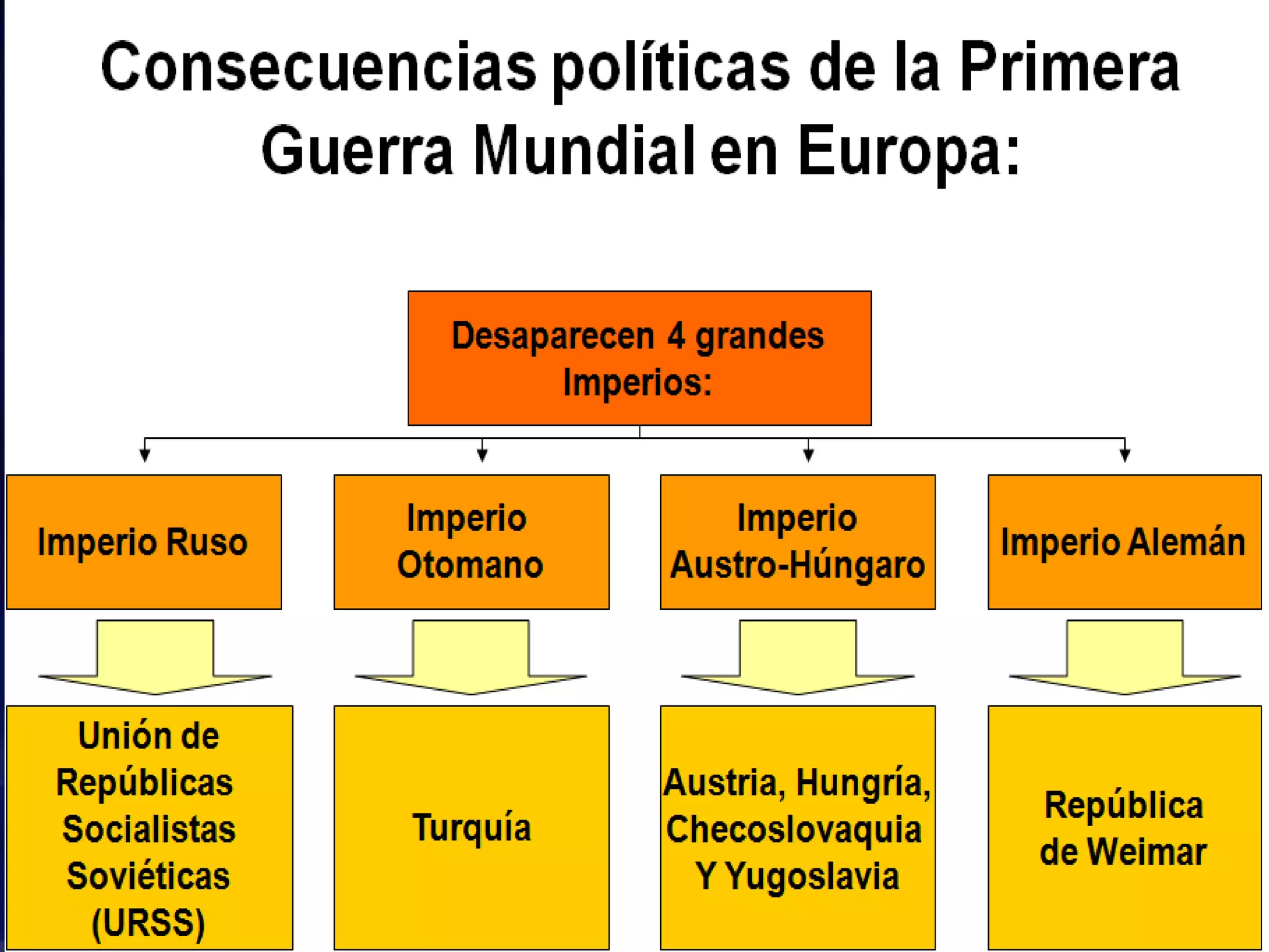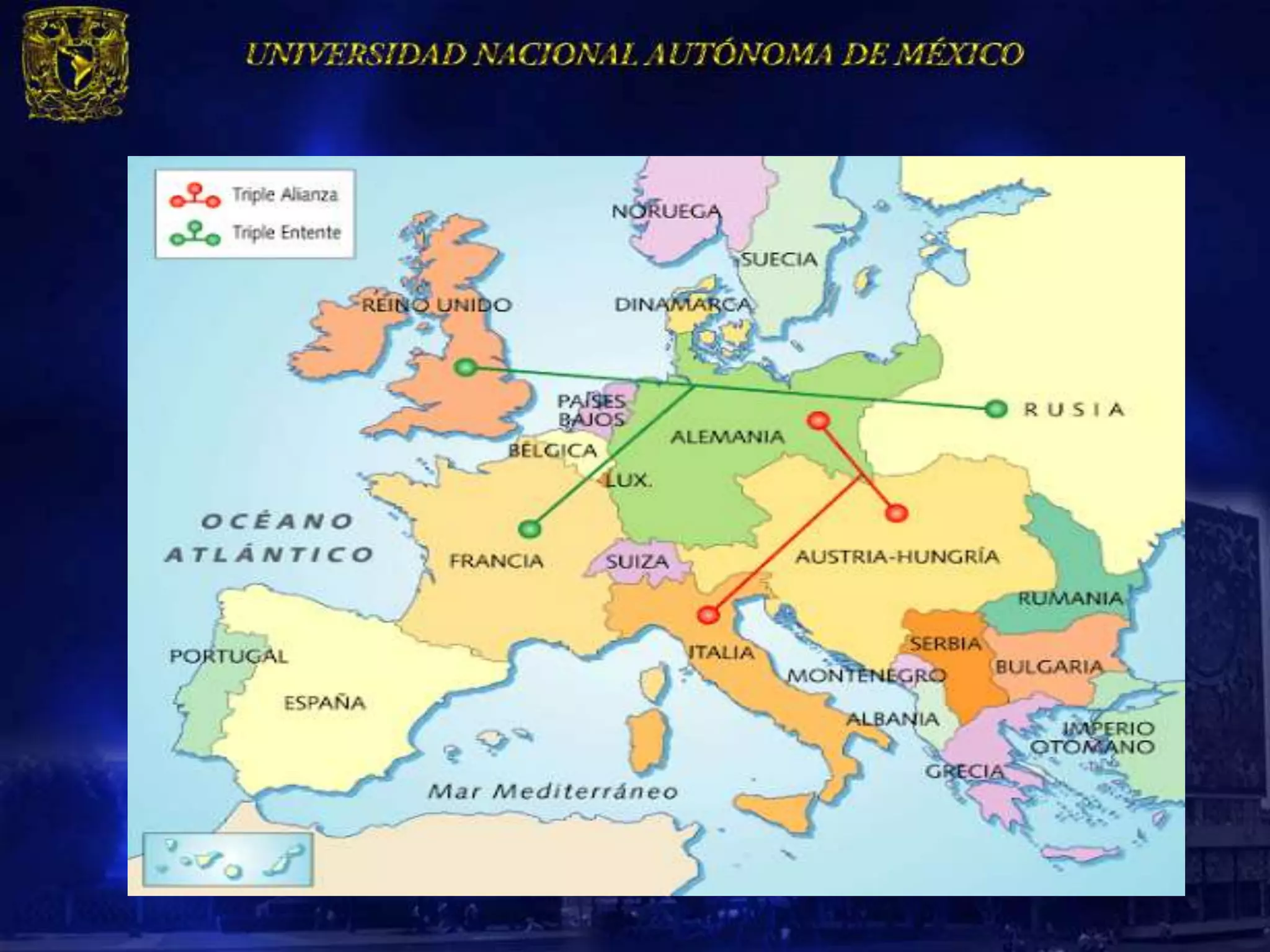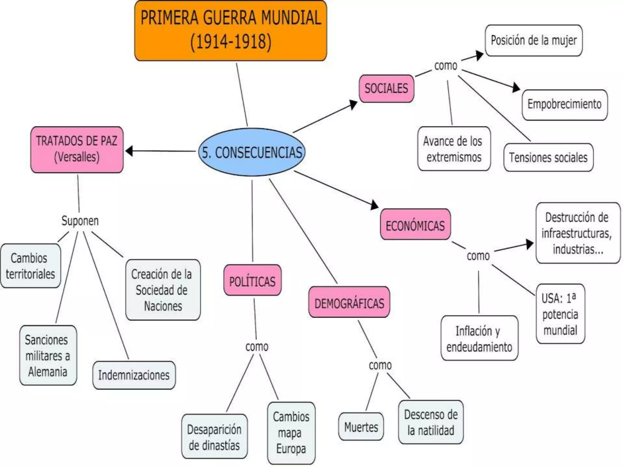 La Primera Guerra Mundial fue un conflicto mundial entre las Potencias Centrales de la Triple Alianza y los Aliados de la Triple Entente que duró desde 1914 a 1918. Comenzó con el asesinato del archiduque Francisco Fernando de Austria-Hungría y la subsiguiente declaración de guerra de Austria-Hungría a Serbia, lo que llevó a la entrada de las grandes potencias en el conflicto en los bandos opuestos. La guerra involucró tanto el frente occidental de trincheras en Francia y Bélgica como el frente oriental entre