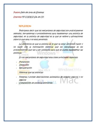 El documento describe tres métodos de cifrado: 1) Cifrado de Polybius Square, que sustituye letras por números basados en su posición en una matriz; 2) Cifrado de Bacon, que asigna grupos de "a" y "b" a cada letra para representarla binariamente; 3) Cifrado César, que desplaza cada letra un número fijo de posiciones.