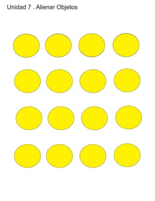 El documento habla sobre la unidad 7 de un curso sobre alienar objetos. Brevemente menciona los nombres de dos estudiantes y el número de su clase, así como la unidad 5 sobre bordes.