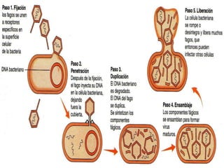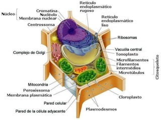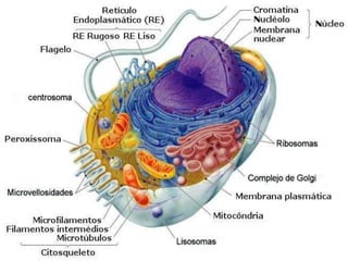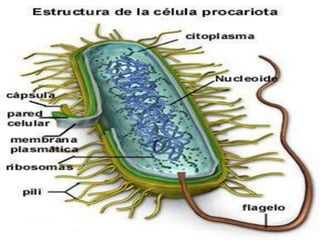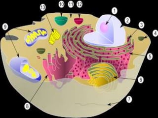La teoría celular propone que la célula es la unidad básica de la vida. Existen dos tipos de células: procariotas y eucariotas. Las procariotas carecen de núcleo y organelas, mientras que las eucariotas contienen un núcleo y diversas organelas. Las células se reproducen a través de la división celular. Los virus carecen de actividad metabólica y solo pueden reproducirse dentro de una célula huésped a través de ciclos líticos o lisogénicos.