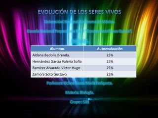 Este documento presenta resúmenes de varios conceptos clave relacionados con la evolución biológica, incluida la teoría de la evolución de Darwin, los mecanismos de la selección natural y la deriva genética, la filogenia y la ontogenia, los registros fósiles como evidencia de la evolución, y las contribuciones de científicos como Lamarck. Los resúmenes provienen de varias fuentes en línea creíbles sobre biología y evolución.