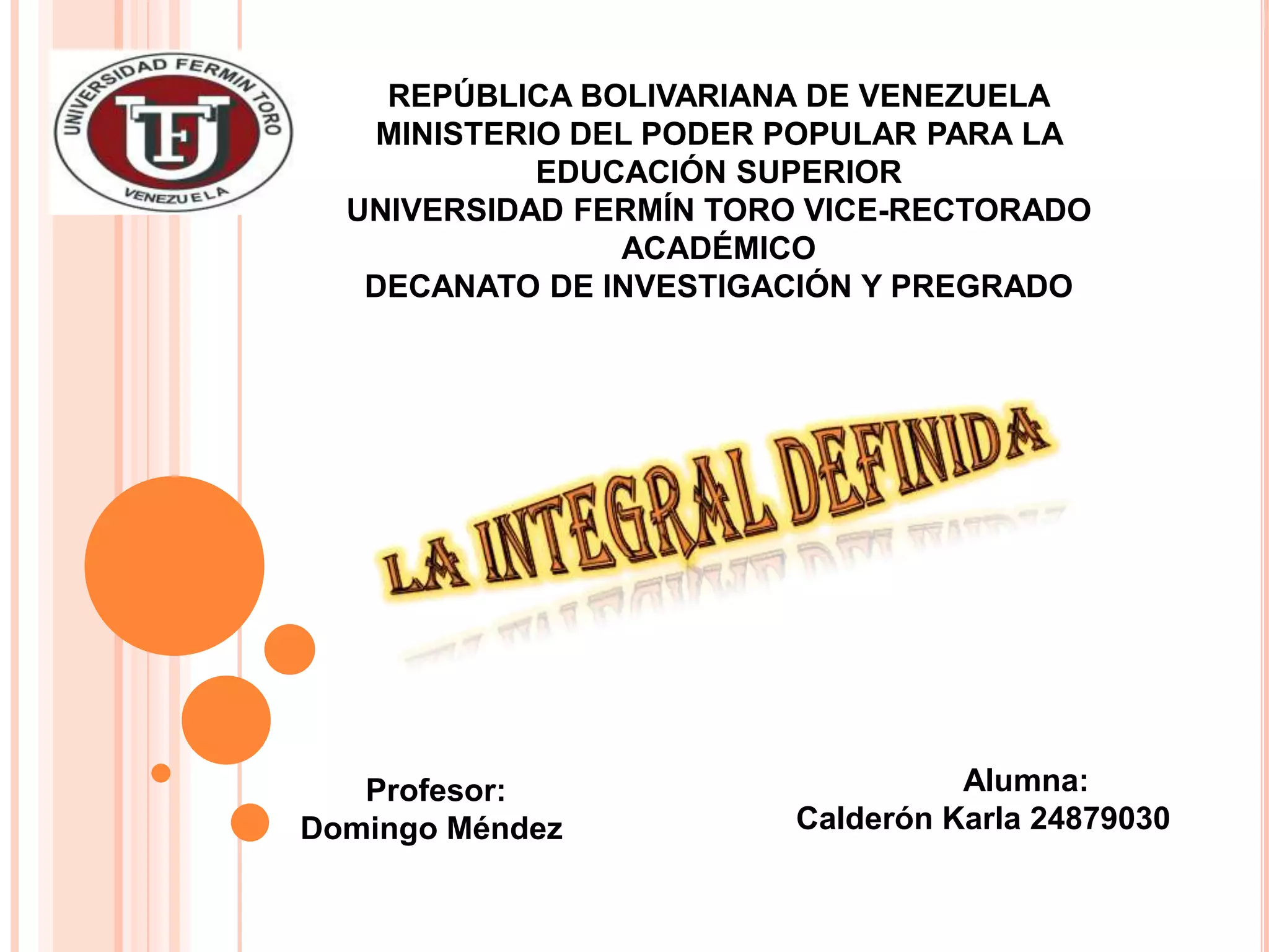3) También se explica el teorema del valor medio para integrales, el cual establece que existe un punto c en el intervalo donde la función alcanza un valor medio.