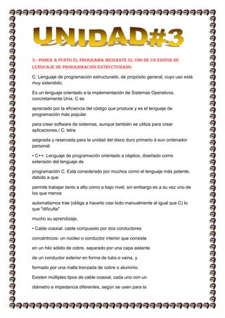El documento describe los pasos para compilar y ejecutar un programa en C desde un editor de código fuente. Estos pasos incluyen compilar el código fuente para generar un archivo objeto, enlazar el archivo objeto con bibliotecas para crear un ejecutable, y depurar y ejecutar el programa hasta que no haya errores. También describe los conceptos de lenguaje de máquina, compilador, enlazador y cargador en el proceso de traducción y ejecución de un programa.