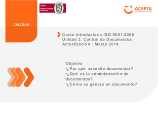 Este documento explica la importancia de la documentación para el funcionamiento de una organización y su sistema de gestión de calidad. Detalla que la documentación describe los procesos y responsabilidades de trabajo de una organización y debe mantenerse actualizada. Además, explica brevemente qué es la administración de documentos y el proceso para generar un nuevo documento como parte del sistema de gestión de calidad de una organización.