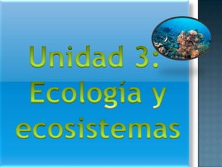 Este documento presenta información sobre ecología, ecosistemas, recursos naturales, energía y contaminación. Explica conceptos clave como ecosistema, recursos naturales, fuentes de energía naturales y alternativas, y métodos para prevenir y controlar la contaminación. También incluye temas, niveles de organización en ecología, tipos de ecosistemas y recursos, y concluye enfatizando la importancia de que los ingenieros consideren aspectos ambientales al crear nuevas tecnologías.
