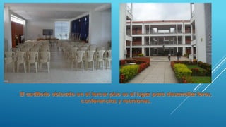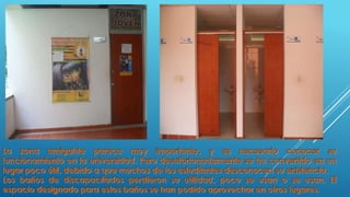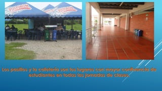 El documento menciona los nombres de cuatro estudiantes y describe que las instalaciones de la universidad se ven desde el satélite y que los estudiantes solo usan un espacio muy pequeño a pesar de que la universidad tiene mucho espacio.