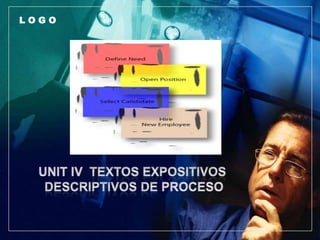 Este documento proporciona información sobre textos expositivos descriptivos de proceso. Explica que estos textos enseñan al lector cómo hacer algo describiendo los pasos de un proceso o procedimiento de manera lógica y secuencial usando indicadores de transición. También cubre las características y organización de estos textos, incluyendo el uso de mapas semánticos. Además, define artículos científicos y sus partes, características y tipos.