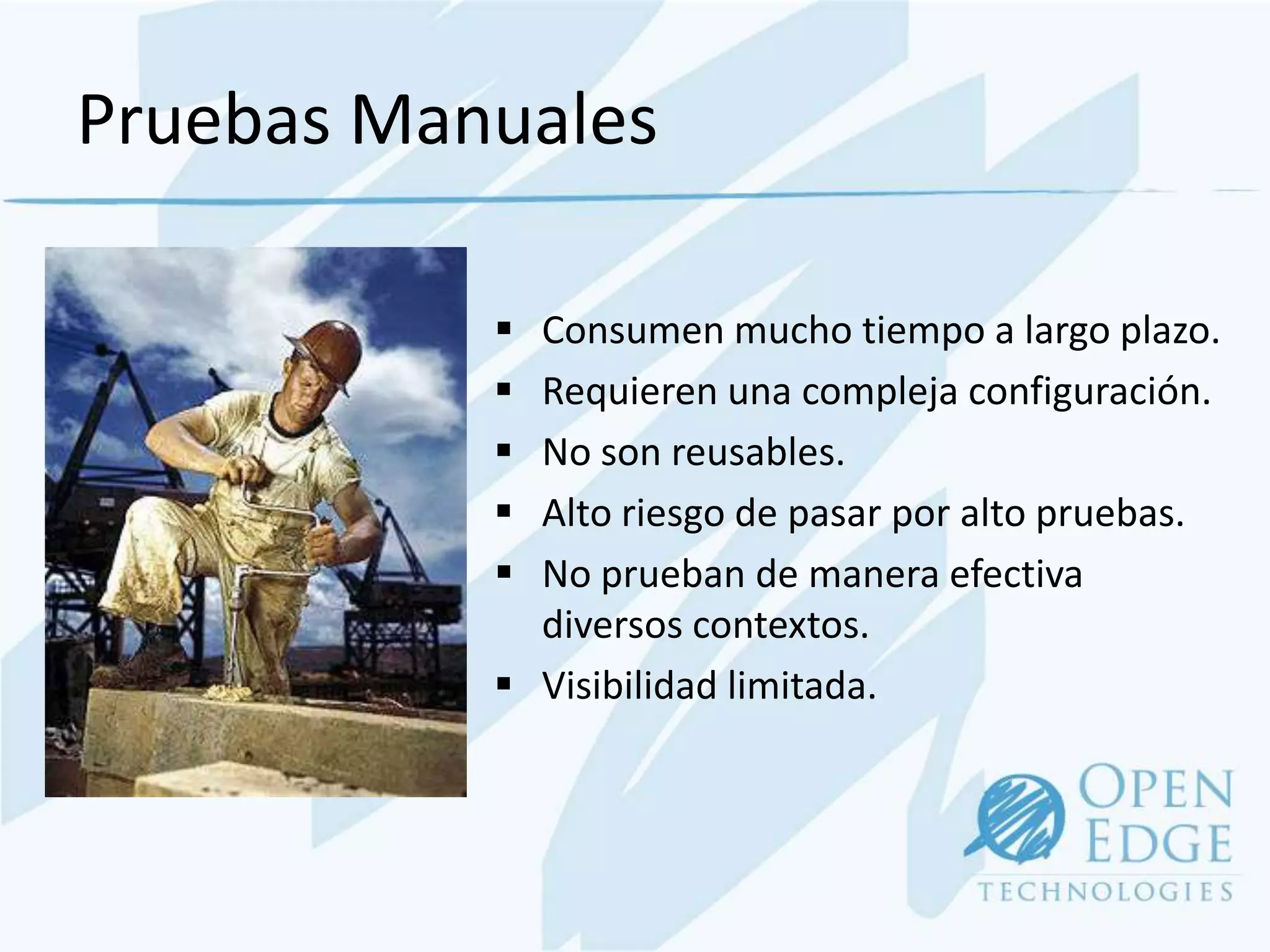 Este documento describe las ventajas de las pruebas de unidad automatizadas sobre las pruebas manuales. Las pruebas de unidad automatizadas reducen el costo y tiempo de las pruebas de regresión, son reutilizables, prueban diversos contextos de manera efectiva y tienen visibilidad global. También duplican el tiempo de desarrollo pero reducen el tiempo total del ciclo de desarrollo al encontrar bugs temprano y facilitar el refactorizado del código.