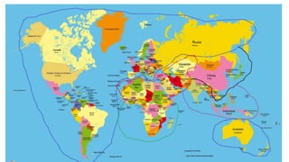 Este documento resume las características fundamentales de las sociedades y los movimientos migratorios. Explica que las sociedades agrupan personas de diferentes culturas y distingue cinco áreas culturales principales. También describe la evolución de las sociedades tradicionales a las modernas y posmodernas, y resume las características de las sociedades europea y española. Por último, analiza las causas y efectos de las migraciones, incluyendo ejemplos de migraciones en Europa y España.