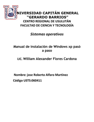Este documento proporciona instrucciones paso a paso para instalar el sistema operativo Windows XP en un ordenador. Explica cómo iniciar la instalación desde el CD, particionar y formatear el disco duro, copiar los archivos, configurar la fecha, hora y zona horaria, introducir la clave de producto, y completar la configuración inicial para preparar el sistema operativo para su uso.
