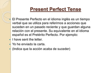 El Pasado Perfecto en el idioma inglés es un tiempo verbal