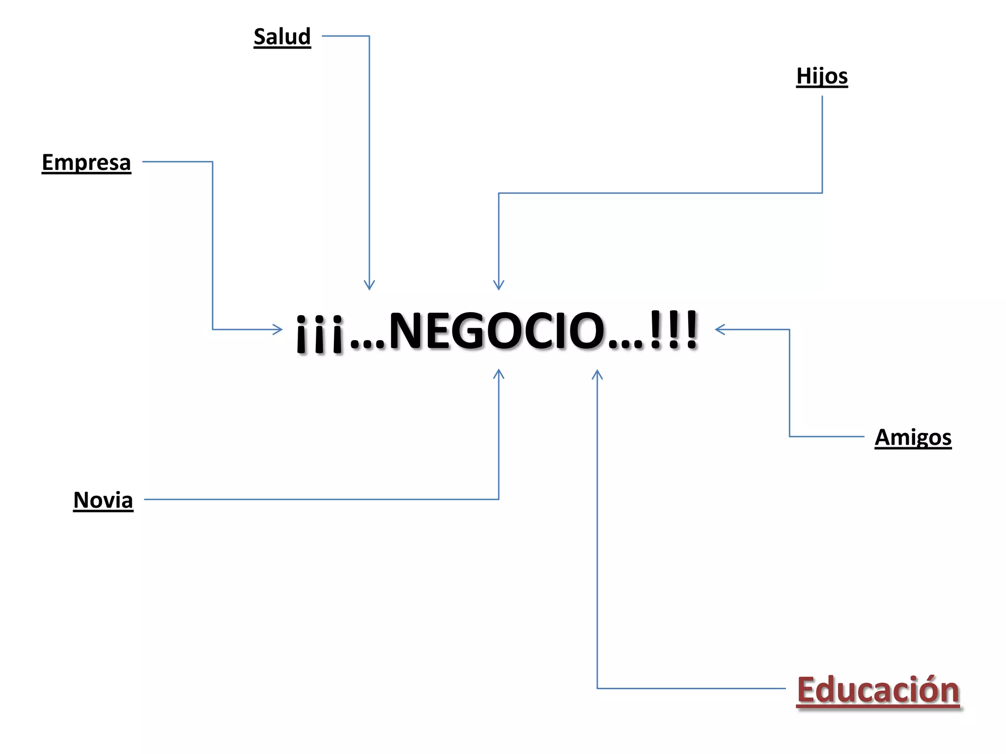 Este documento breve menciona varios temas de vida como salud, hijos, empresa, amigos, novia y educación, y enfatiza la palabra "negocio" y la frase "hoy". También incluye las palabras "compartir" y "vs".