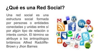 Las redes sociales son estructuras sociales formadas por personas conectadas por intereses comunes. Se originaron en 1995 con el sitio classmates.com para que usuarios mantuvieran contacto con antiguos compañeros, y se hicieron populares en 2002-2003 con sitios como MySpace y Xing que promocionaban redes de amigos en línea. Las redes sociales son útiles porque facilitan la interacción entre personas aunque no se conozcan.