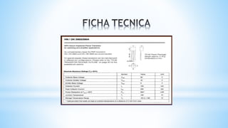 El documento describe diferentes tipos de transistores, incluyendo sus características y usos. Explica que los transistores son dispositivos electrónicos semiconductores que amplifican señales y cumplen funciones como conmutación o rectificación. Describe transistores JFET, MOSFET, fototransistores, de contacto puntual y de unión bipolar.