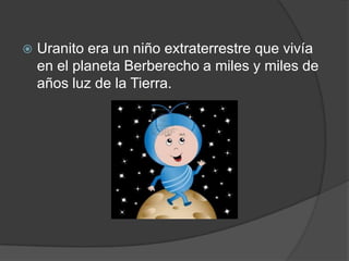 Uranito era un niño extraterrestre malcriado que fue enviado a la Tierra para aprender a respetar a los demás. Durante su viaje, conoció a niños de diferentes culturas como Inu el esquimal, Martín del Amazonas, Hassan el nómada y ZhuMei de China. Aprendió que a pesar de las diferencias, los niños de todo el mundo pueden llevarse bien y divertirse juntos.
