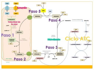 Este documento resume la urea, el principal metabolito de las proteínas y su forma principal de excreción de nitrógeno. Explica que la urea se sintetiza en el hígado a través del ciclo de la urea y proporciona los rangos normales de urea en la sangre para adultos, niños y recién nacidos. También describe que la urea es un indicador de la función renal y la necesidad de diálisis en pacientes con enfermedad renal crónica. Brevemente resume los desórdenes del ciclo de la