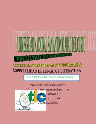 Este documento discute el impacto de las nuevas tecnologías de la información y la comunicación (TIC) en la educación. Explica que las TIC han cambiado la forma en que accedemos a la información y nos comunicamos, y que ahora es necesario integrar las TIC en la educación para que los estudiantes aprendan sobre esta nueva realidad tecnológica y aprendan con las TIC. También señala que hay debates sobre si incluir asignaturas de informática o modificar las asignaturas existentes para incorporar las TIC.