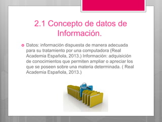 Este documento describe los diferentes tipos de sistemas de información, incluyendo sistemas de oficina de información, sistemas de procesamiento de transacciones, sistemas de gestión de la información, sistemas de soporte de decisiones y sistemas expertos. Explica las características y funciones de cada tipo de sistema, así como ejemplos de cómo se usan en diferentes contextos organizacionales.